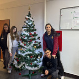 Dzisiaj Samorząd Uczniowski ubrał szkolną choinkę. Było trochę śmiechu i podejrzane miny...