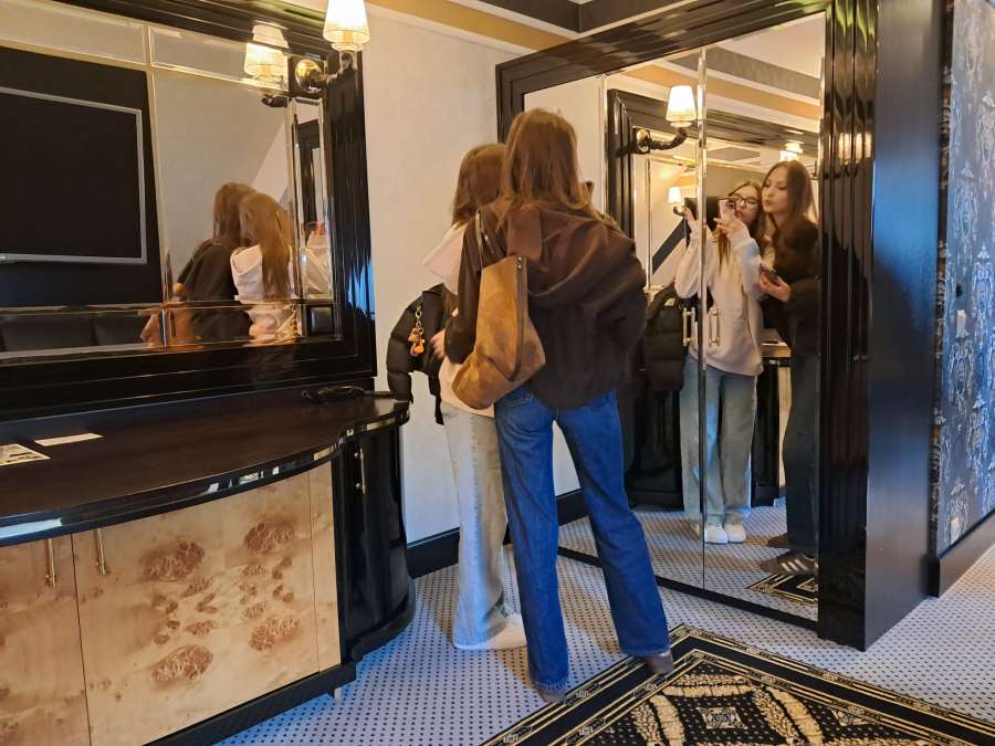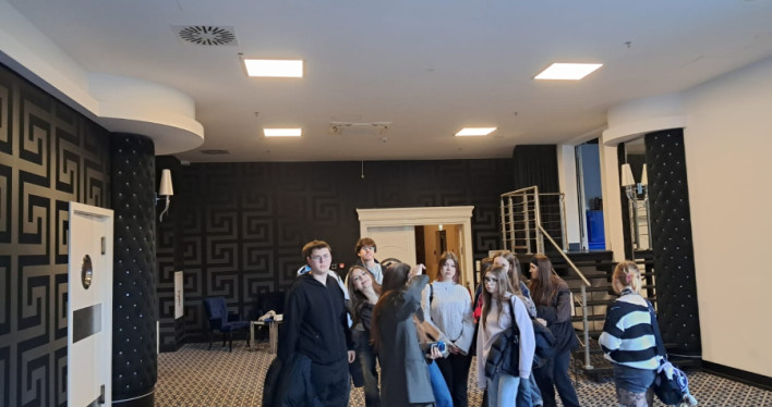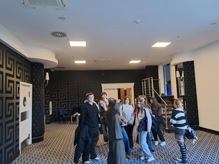 Podczas wizyty uczniowie mieli okazję poznać współczesne oblicze obiektu. Zwiedzili pokoje hotelowe, w tym również wyjątkowy gabinet prezesa. Grupa odwiedziła także sale konferencyjno‑bankietowe, recepcję oraz restaurację.