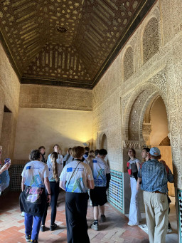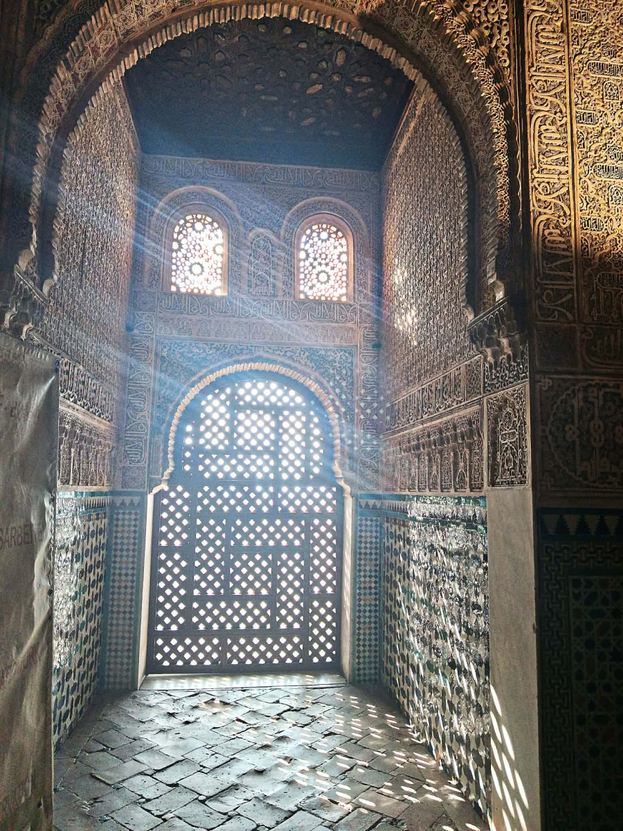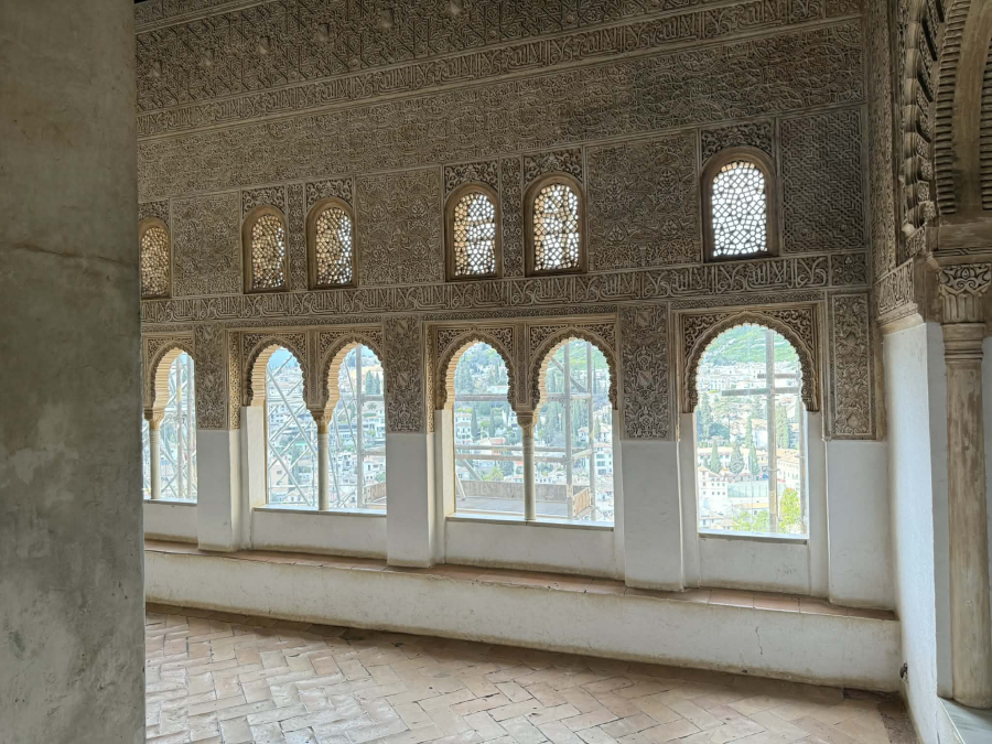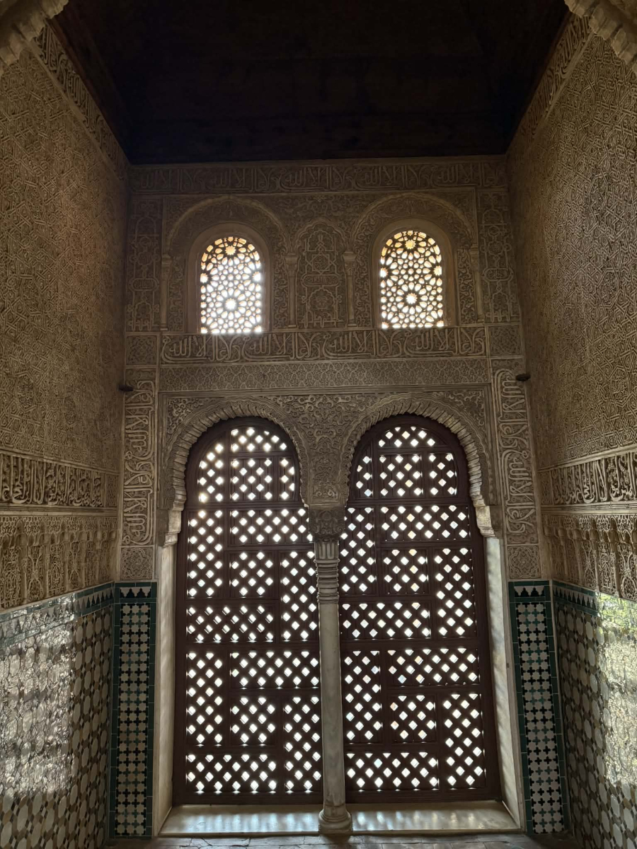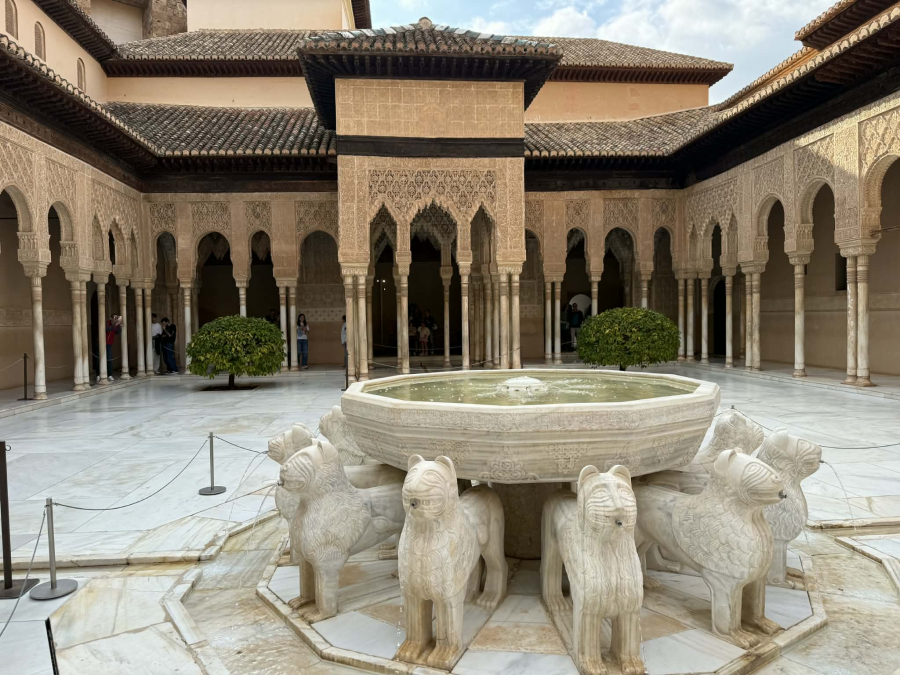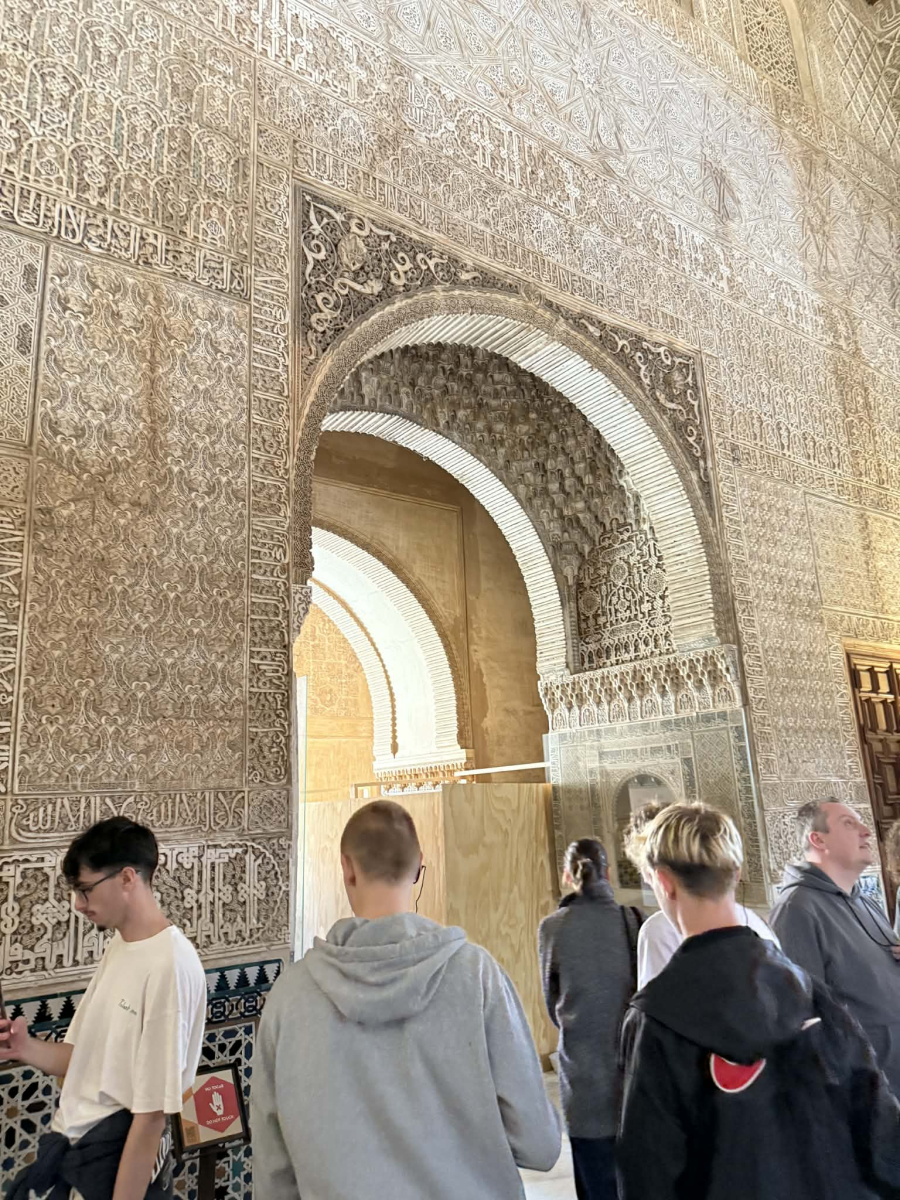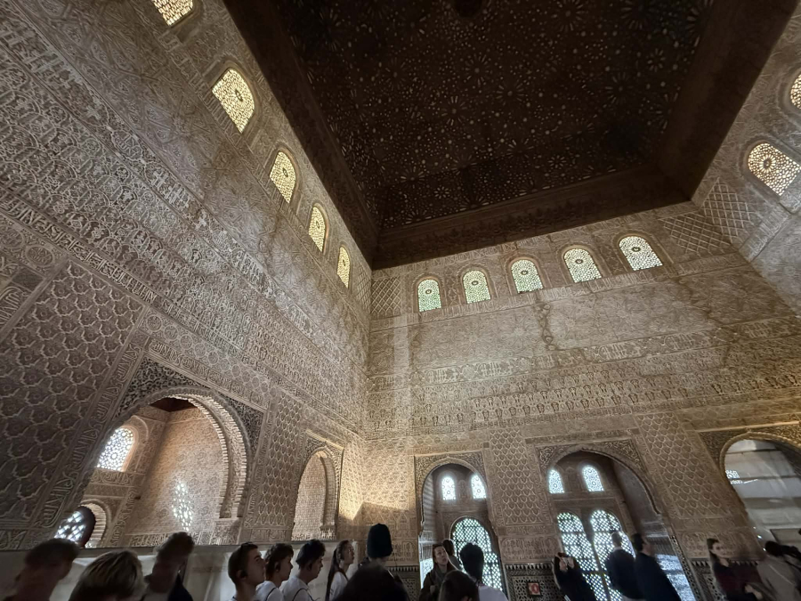 Pałace Nasrydów - czyli oficjalne rezydencje muzułmańskich władców, gdzie toczyło się życie dworskie i istniał harem. Bogactwo dekoracji, niektórzy mówią wafle, ktoś znajduje motyw Maincrafta, ktoś mówi o zwisających wielokształtach, przewodniczka mówi o koronkowych stiukach i rzeźbionych w drewnie cedrowym stropach i kopułach - a wszystko to delikatna praca artystów głównie w gipsie. Piękne łuki, zdobione kolumny, liczne arkady to wprost sceneria wymarzona do niepowtarzalnych zdjęć.
