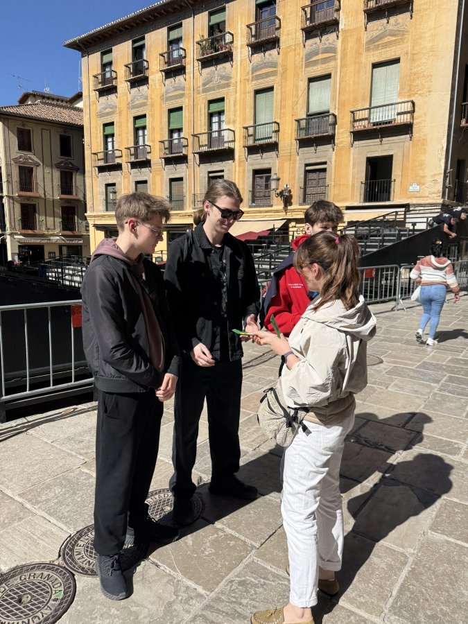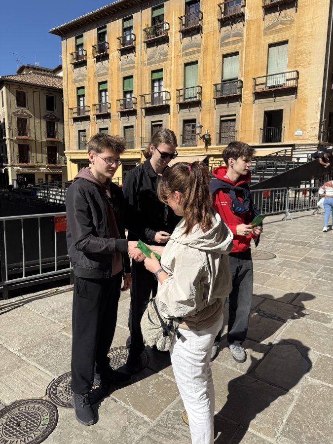 Intensywny dzień za nami. Obie ekipy zawodowe wyruszyły dzisiaj w miasto, aby odszukać motyw "granatu" w Granadzie. Okazało się, że granat jest wszędzie np. w architekturze, kulturze i zabytkach miasta. Granat z hiszpańskiego to granada jest symbolem obfitości i płodności. Zwycięskie ekipy przekroczyły liczbę 20 (rozliczyły się zdjęciem, pinezką lokalizacji i opisem motywu), a byli to Oliwier, Marcel i Mateusz oraz Karol i Maryia. Gratulujemy bystrości oka.