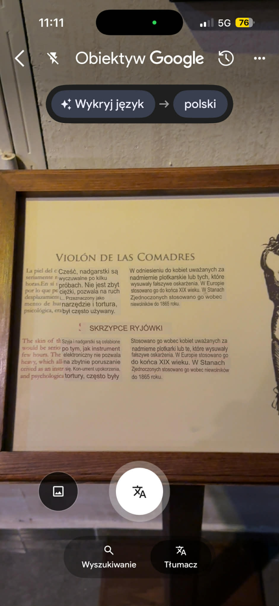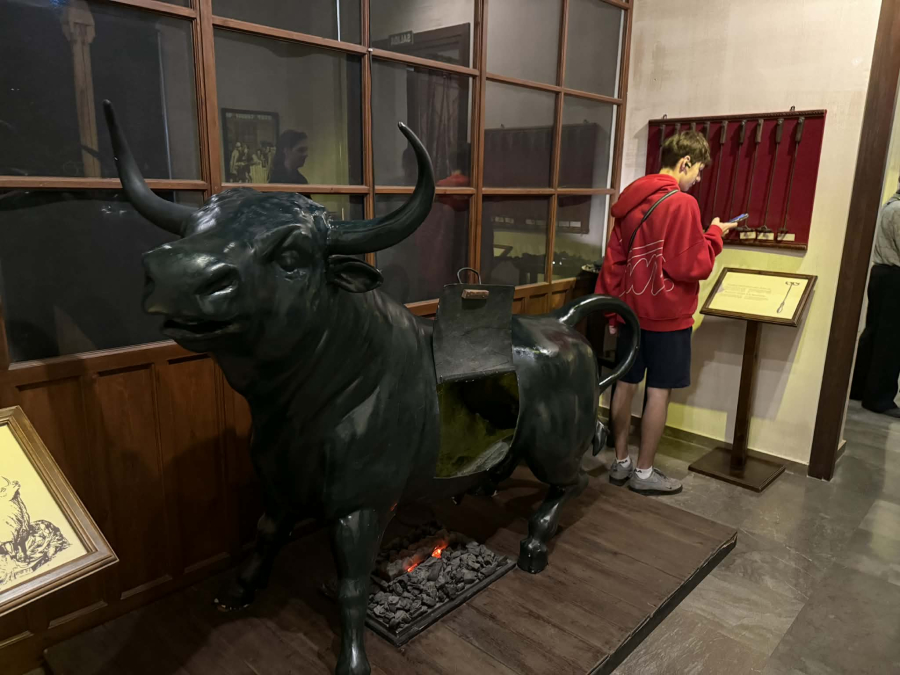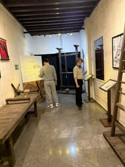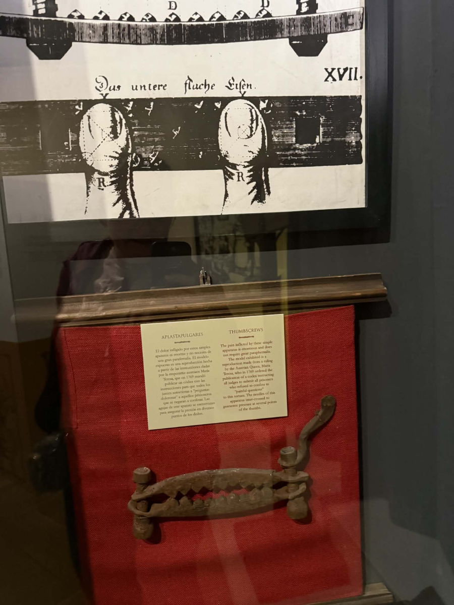 Wycieczka do muzeum tortur w Granadzie była ciekawa, ale też trochę straszna. W środku było dużo różnych narzędzi używanych dawniej do karania ludzi za niewierność, nieposłuszeństwo, przestępstwa, wrogość... Narzędzia tortur to kary cielesne, np. żelazna dziewica czy krzesła czy łóżka z kolcami, specjalne maski, metody podpiekania czy rozciągania ciała ludzkiego. Dowiedziałem się, jak wyglądało życie w średniowieczu i jak surowe były wtedy kary. Niektóre rzeczy były trudne do oglądania, ale całość była bardzo interesująca. Ta wycieczka pokazała mi, jak bardzo zmienił się świat i podejście do  humanitarności.