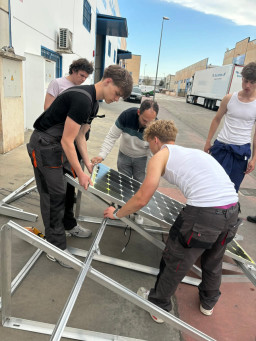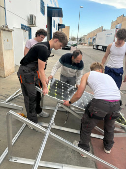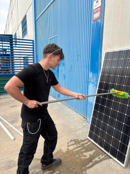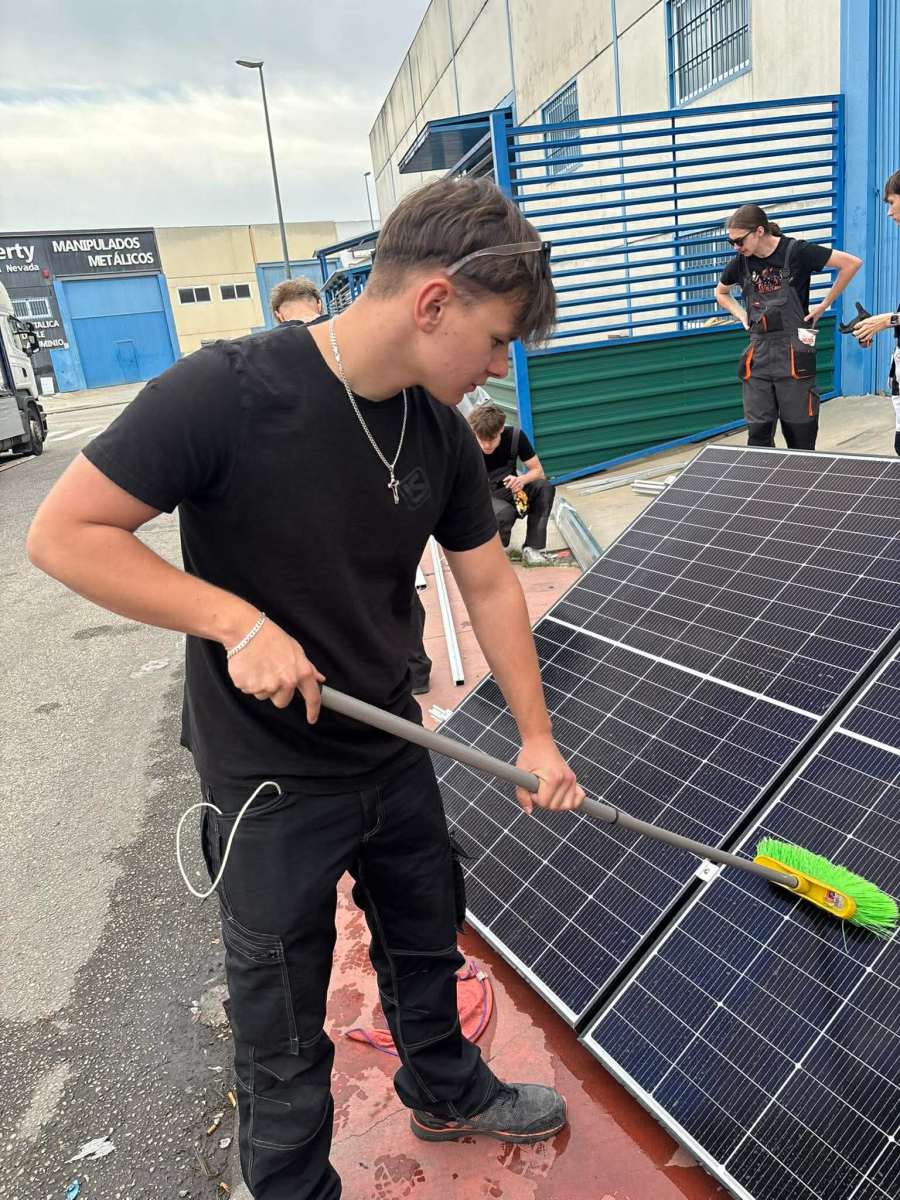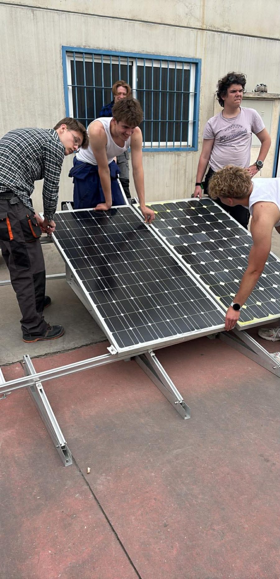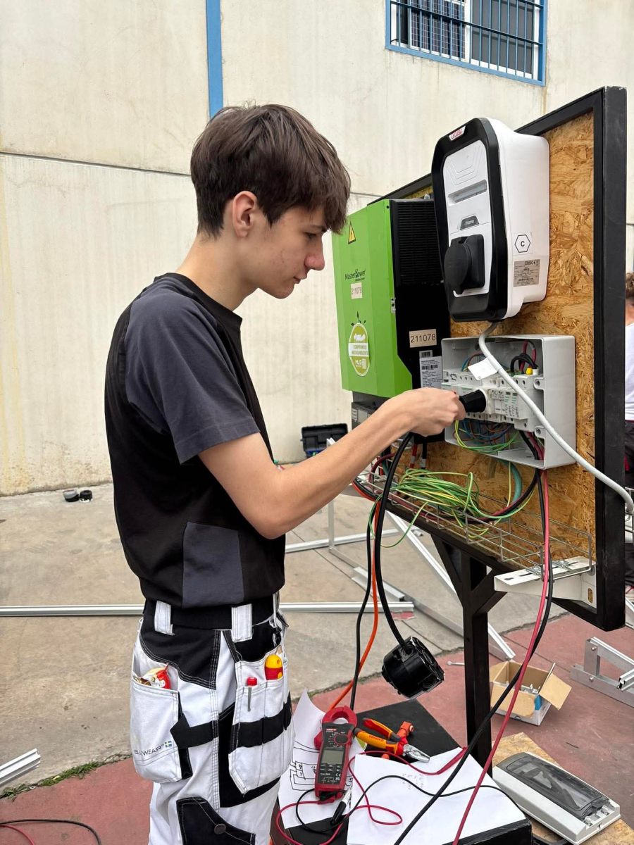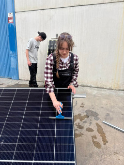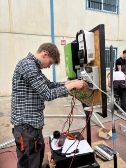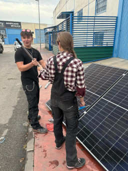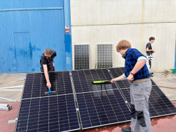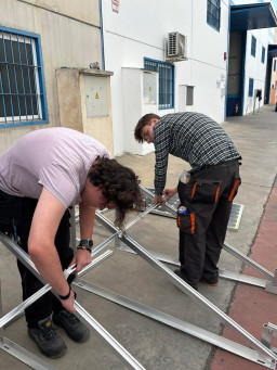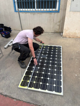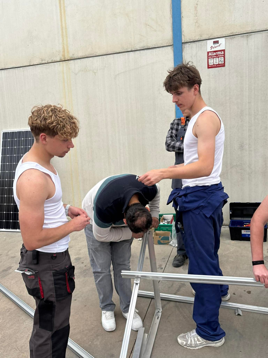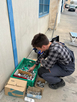 Podczas praktyk zajmowaliśmy się przygotowaniem i montażem elementów instalacji fotowoltaicznej. Najpierw składaliśmy metalowy stelaż, który służy do zamocowania modułów fotowoltaicznych. Dopasowywaliśmy aluminiowe profile i skręcaliśmy je ze sobą, aby konstrukcja była stabilna. Następnie montowaliśmy moduły fotowoltaiczne na przygotowanym stelażu. Przed uruchomieniem instalacji czyściliśmy powierzchnię paneli, aby usunąć kurz i zabrudzenia, przy okazji przećwiczyliśmy metodu czyszczenia i konserwacji. Kolejnym etapem było podłączenie przewodów elektrycznych oraz sprawdzenie poprawności połączeń w skrzynce elektrycznej. Korzystaliśmy przy tym z narzędzi pomiarowych, aby upewnić się, że instalacja działa prawidłowo. Dzięki temu mogliśmy zobaczyć, jak wygląda montaż oraz przygotowanie instalacji fotowoltaicznej w praktyce.