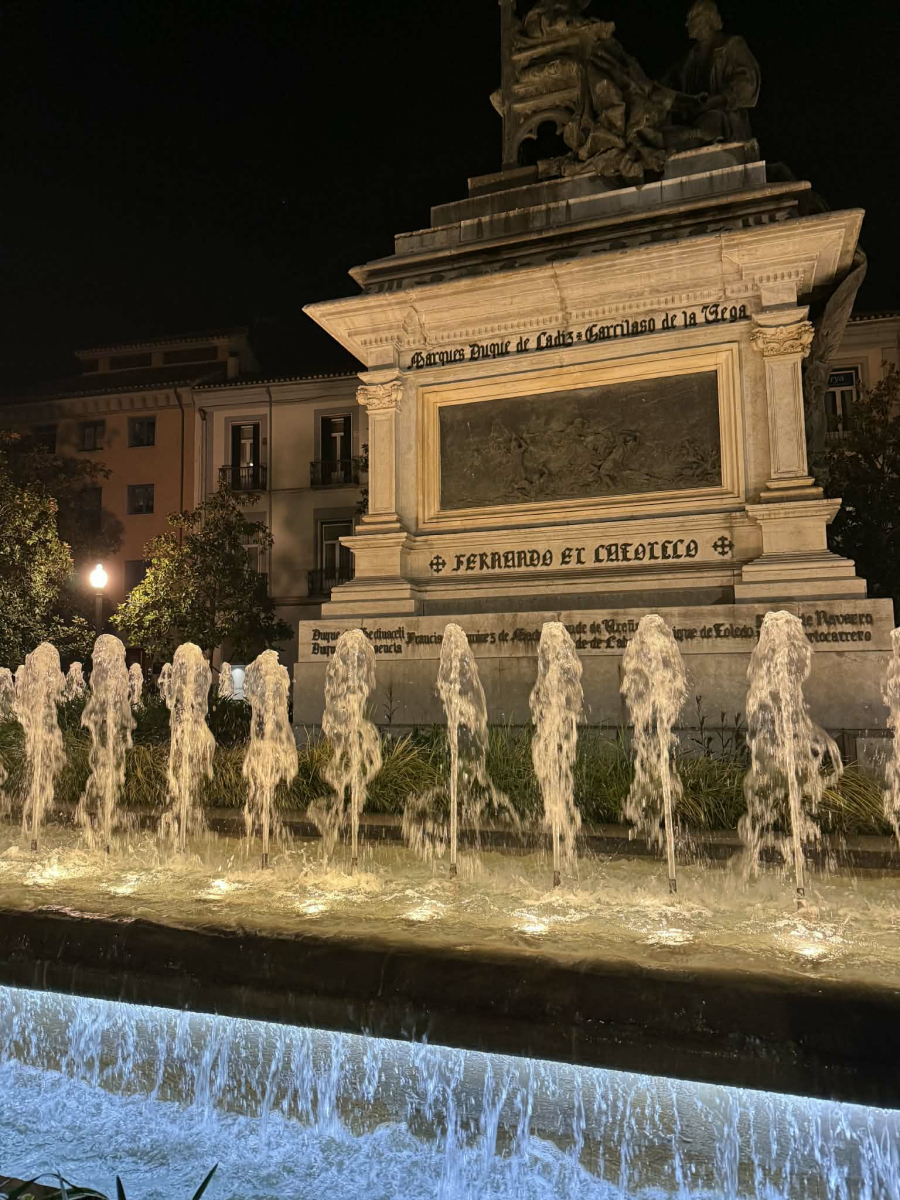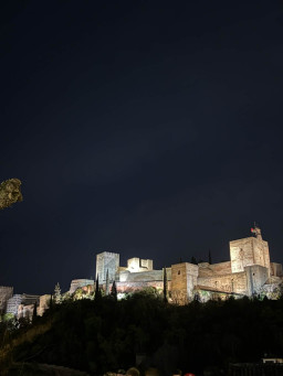 Po pracy wybraliśmy się całą grupą na wieczorny spacer, podczas którego podziwialiśmy piękne widoki oraz oświetloną Alhambrę, co było wyjątkowym zakończeniem dnia.