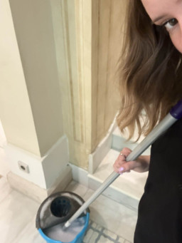 Buenos días! Dziś na praktykach zajmowałam się sprzątaniem strefy spa oraz siłowni, dbając o czystość i komfort osób korzystających z tych miejsc. Myłam także korytarze, schody i poręcze, zwracając uwagę na dokładność i higienę. Dodatkowo układałam rzeczy w magazynie i pomagałam paniom sprzątającym w ich codziennych obowiązkach.