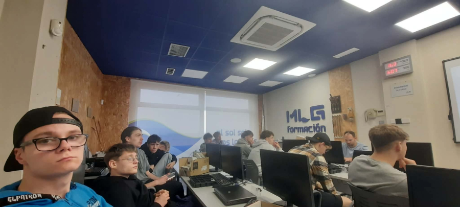 Pierwszego dnia praktyk pojechaliśmy razem z Panią Laurą, która wszystko po kolei opowiedziała nam w języku angielskim. Podróż minęła dość sprawnie, ale była męcząca. Dojazd na miejsce praktyk zajął nam 1,5 godziny. Zostaliśmy oprowadzeni po zakładzie pracy oraz przekazano nam informacje na temat przebiegu dalszych praktyk. Same zajęcia rozpoczęliśmy od sprawdzenia, co już potrafimy, a co musimy jeszcze dopracować. Pokazano i wytłumaczono nam również sposób łączenia przewodów elektrycznych tak, aby były jak najtrwalej połączone. Po zakończeniu zajęć skierowaliśmy się na wcześniej pokazany przystanek powrotny. Co prawda nasz autobus spóźnił się o 20 minut, potwierdzając wiedzę z zajęć kulturowych, które odbyliśmy w Polsce — że Hiszpanie mają tendencję do spóźniania się — jednak nie opuszczały nas dobre emocje i świetna energia.