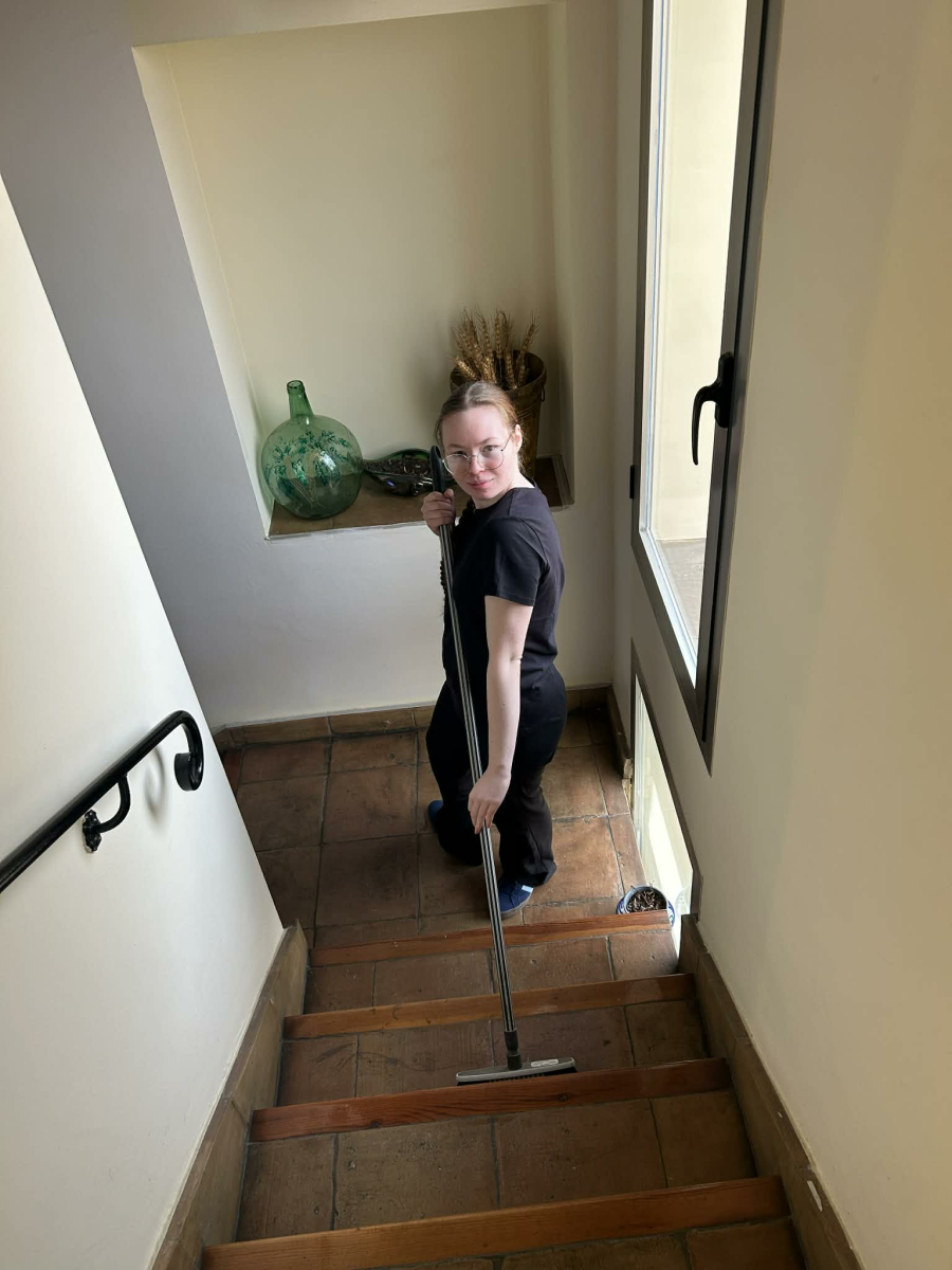 Relacja uczniów z turystyki: W pierwszym dniu praktyk zawodowych w Hotelu Abadia dbaliśmy o porządek i czystość w pokojach, w strefach wypoczynkowych oraz w apartamentach. Uczyliśmy się, jak prawidłowo ścielić łóżka oraz w jaki sposób przydzielać ręczniki do poszczególnych pokoi. Poznaliśmy również podstawowe słowa i zwroty w języku hiszpańskim, które mogą być przydatne w codziennej pracy.