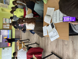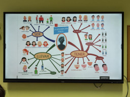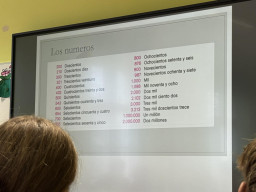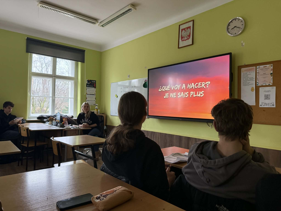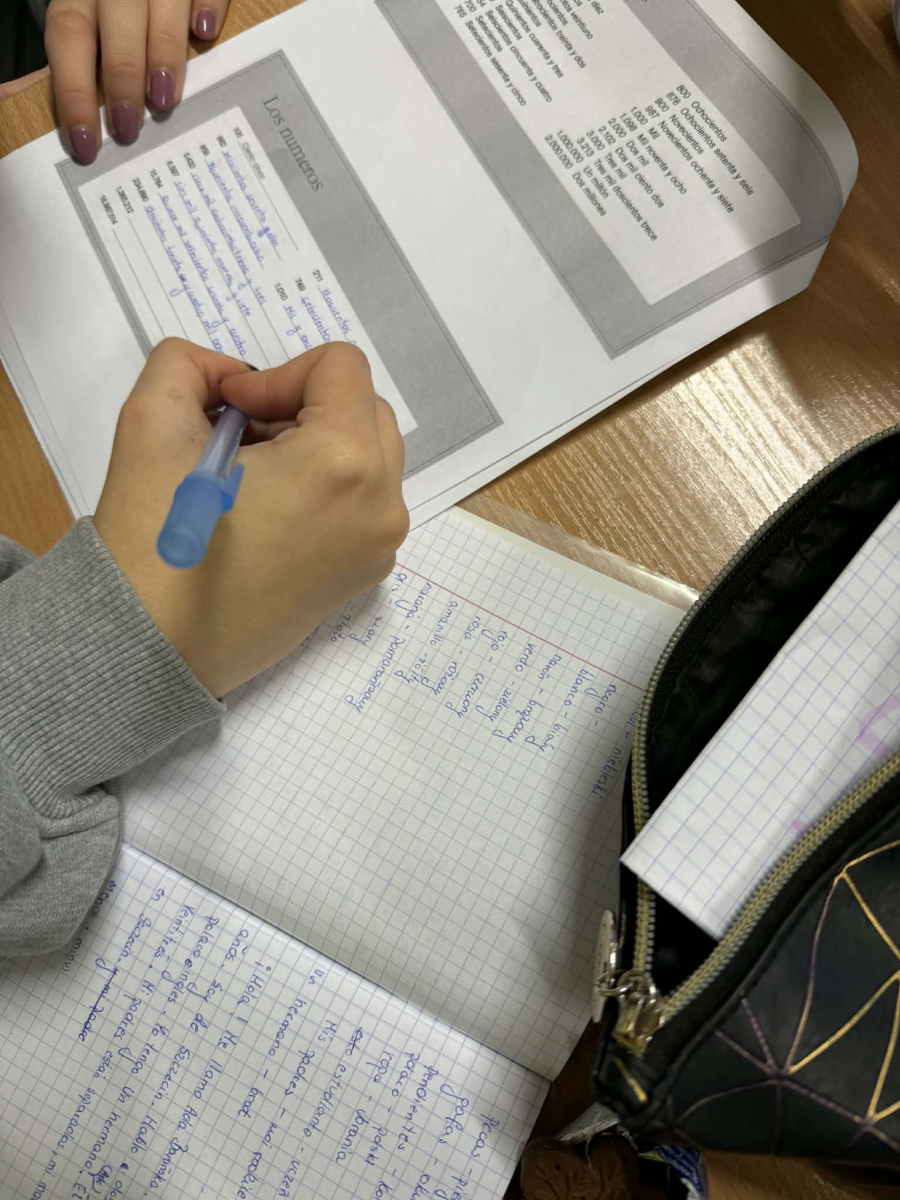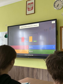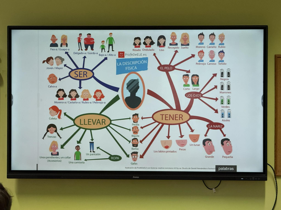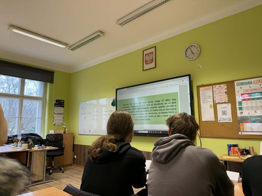 Na początku zajęć zrobiliśmy krótkie przypomnienie materiału. Następnie rozpoczęliśmy temat wyglądu zewnętrznego, przetłumaczyliśmy przykładowe opisy osób, a następnie opisywaliśmy siebie i swoją rodzinę, budując zdania po hiszpańsku. Poznaliśmy odmianę przez osoby czasowników: być i mieć. Nauczyliśmy się także odróżniać zwroty “me gusta” i “me gustan” oraz zrozumieliśmy, że pierwszy z nich odnosi się do jednej rzeczy, a drugi do kilku (liczby mnogiej). Uczyliśmy się również liczebników każdego typu – od 1 aż do miliona. Kolejnym etapem było ćwiczenie odczytywania godzin po hiszpańsku. Na zakończenie wzięliśmy udział w Kahoocie, który sprawdzał naszą znajomość liczebników oraz odpowiadaliśmy na wybrane pytania. Wykonaliśmy proste działania matematyczne, takie jak dodawanie i odejmowanie. Na koniec zaśpiewaliśmy piosenkę Me gusta, ćwicząc co lubimy, a czego nie lubimy.