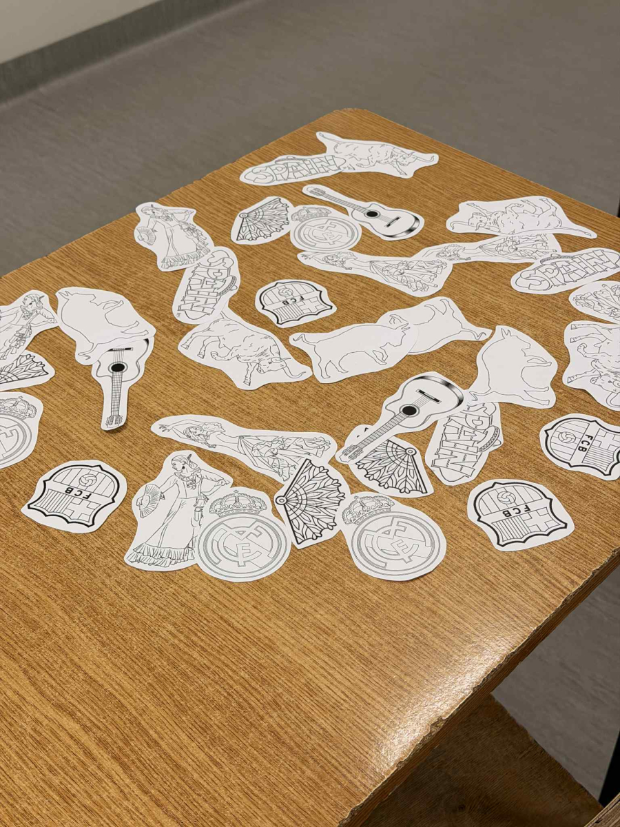 Podczas dzisiejszych zajęć przygotowywaliśmy breloki lub kolczyki, zapoznając się w ten sposób z symbolami hiszpańskimi. W ruch poszły kredki, a rozmowy dotyczyły skojarzeń graficznych z Hiszpanią. Rozmawialiśmy także o naszym zakwaterowaniu, atrakcjach dostępnych na terenie kampusu studenckiego i w jego najbliższej okolicy oraz o tym, jak daleko znajduje się on od centrum. Powtórzyliśmy sjestę oraz pogodę, by dobrze się wszyscy spakowali. Przypomnieliśmy o zakazie spożywania niedozwolonych środków i przypomnieliśmy telefony alarmowe. Rozmawialiśmy o pakowaniu urządzeń elektronicznych na czas lotu.