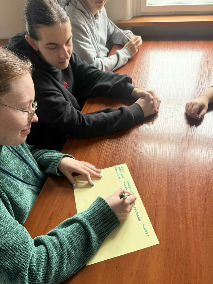 Kolejne spotkanie uczniów zakwalifikowanych do programu Erasmus+ w sektorze VET. Na dzisiejszych zajęciach z panią Weroniką Markowską, rozmawialiśmy o naszych mocnych stronach. Obejrzeliśmy dwa filmy dotyczące tego tematu. Pracowaliśmy w grupach nad wypisaniem naszych mocnych cech w poszczególnych kategoriach takich jak: zainteresowania, umiejętności, wiedza oraz cecha charakteru.