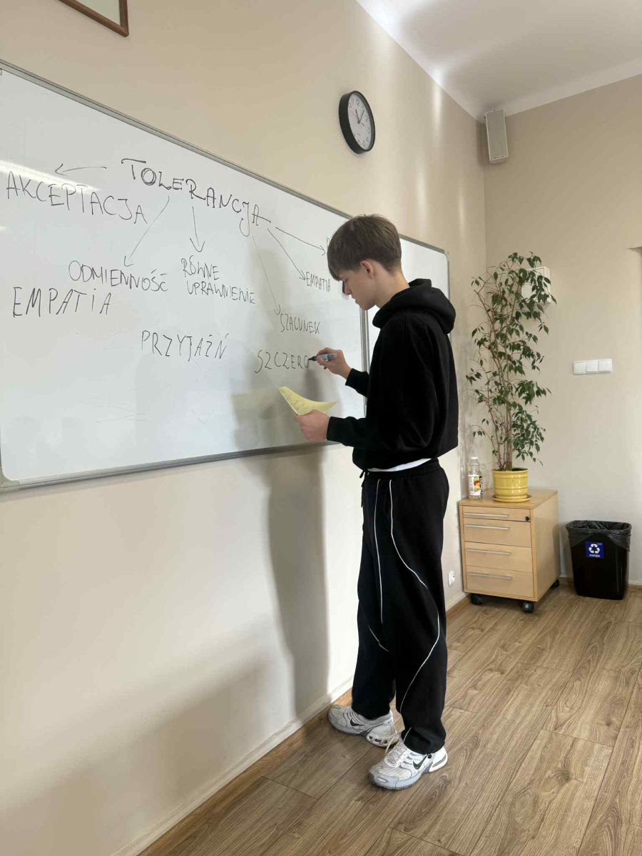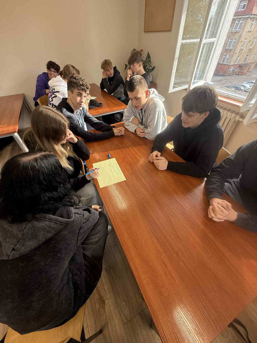 Pani Pedagog - Weronika Markowska przeprowadziła dziś warsztaty z uczestnikami zakwalifikowanymi do udziału w programie Erasmus+ VET 2025. Uczniowie próbowali definiować, czym jest tolerancja i jakich obszarów dotyczy tolerancja. Przed uczestnikami jest duże wyzwanie, mianowicie jeszcze przed wyjazdem muszą się zapoznać z kulturą Hiszpan i różnicami kulturowymi.
