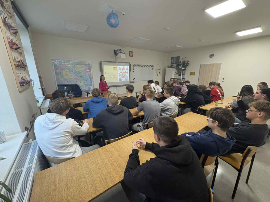 Dziś (27.10.25) uczestnicy projektu dowiedzieli się jaki klimat panuje w Andaluzji, jakiej pogody spodziewać się w marcu, w jakie ubrania się zaopatrzyć, aby dostosować się do warunków atmosferycznych. Ciekawym wątkiem była kwestia gościnności Hiszpan, ich gestów i sposobów powitań. Należy się nastawić, że na niektóre gesty i zachowania reagujemy inaczej. Ale zazwyczaj Hiszpanie są otwarci i gościnni, szczególnie w miejscach często odwiedzanych przez turystów. Uczniowie dowiedzieli się jak wygląda dzień mieszkańców Hiszpanii (dzieci i dorosłych), obejrzeli film o Granadzie i przypomnieli sobie sławne osoby, które pochodzą z Hiszpanii np. Pablo Picasso, czy Antonio Banderas.