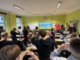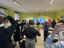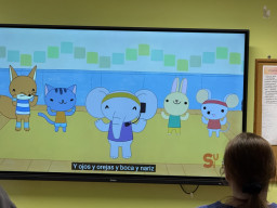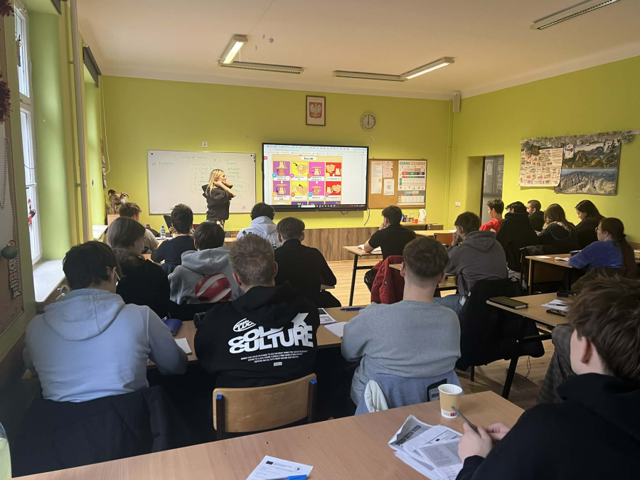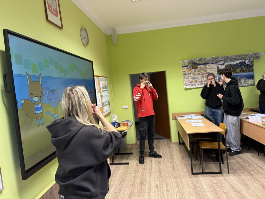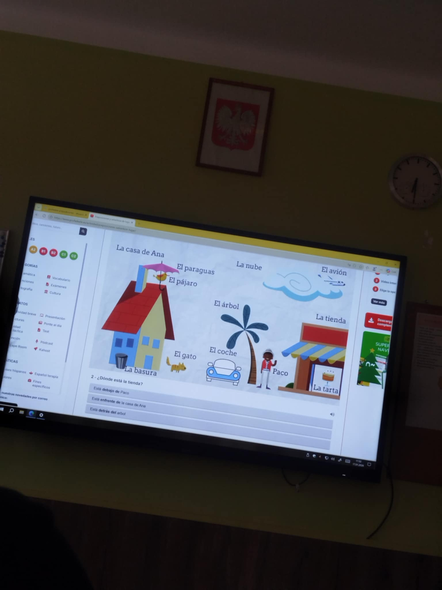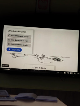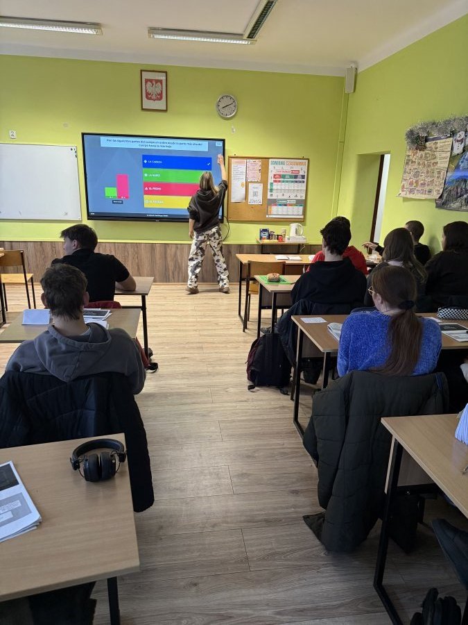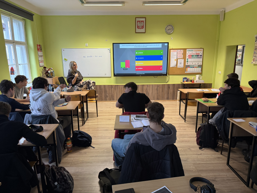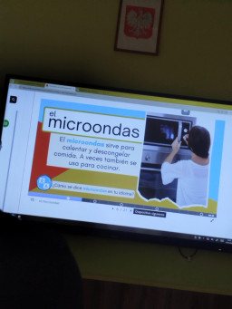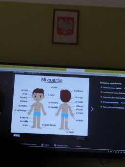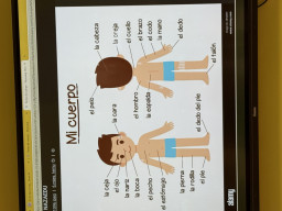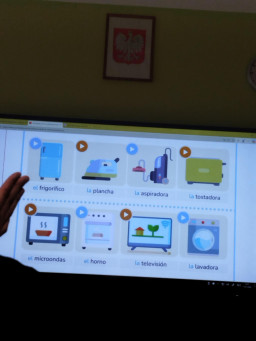 Ostatnie lekcje kursu przygotowawczego z języka hiszpańskiego zaczęliśmy od krótkiego przypomnienia najważniejszych zagadnień, których nauczyliśmy się na wszystkich zajęciach. Poznaliśmy słówka, które pomogą zlokalizować nam obiekty np. gdzie leży piłka. Stosowaliśmy przyimki w zdaniach. Przerabialiśmy słówka i scenki z zakresu podróży samolotem i odprawy lotniskowej. W kolejnej części tłumaczyliśmy rzeczowniki z zakresu sprzętu AGD i podstawowego wyposażenia pokoju, kuchni i łazienki, które z pewnością zastosujemy podczas miesięcznego pobytu na kampusie. Tłumaczyliśmy tekst maila z naszego skryptu zajęć, ucząc się przy tym nowych słówek i rozumienia tekstu. Nauczyliśmy się odmiany słówka ir (iść, jechać) oraz jego użycia w życiu codziennym. Wykonywaliśmy zadania na tablicy multimedialnej związane z częściami ciała oraz sprzętami AGD. Słownictwo z zakresu części ciała, które może się przydać podczas wizyty lekarskiej, ćwiczyliśmy poprzez pokazywanie do tekstu piosenki i rozgrywając kahoota.