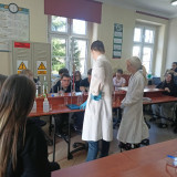 26 marca odwiedzili nas ponownie goście z gimnazjum w Grimmen koło Stralsundu - grupa 16 uczniów tego gimnazjum ze swoimi nauczycielami - panią Silke Herbst i panem Silasem Handschug. Młodzież z Niemiec przygotowała i przeprowadziła zajęcia dla klasy 3E w dwóch grupach: prezentację w języku niemieckim i angielskim na temat szkoły i najładniejszych miejsc w ich rodzinnym Grimmen, oraz ćwiczenia w programowaniu z wykorzystaniem mikrokontrolerów. Była to dobra okazja, aby nasi uczniowie mogli poznać niemieckich rówieśników i przy okazji sprawdzić swoje językowe umiejętności. W razie trudności w komunikacji, pomocą służył jeden z uczestników spotkania - Alan, Polak mieszkający i uczący się w Grimmen.
