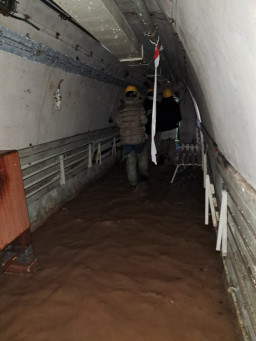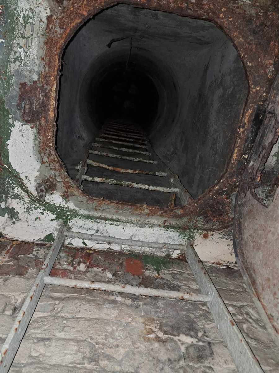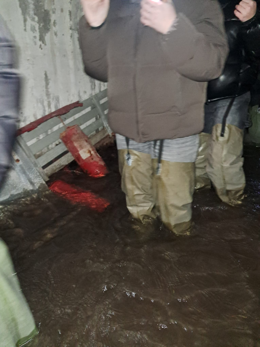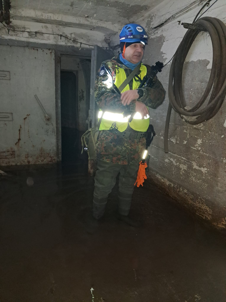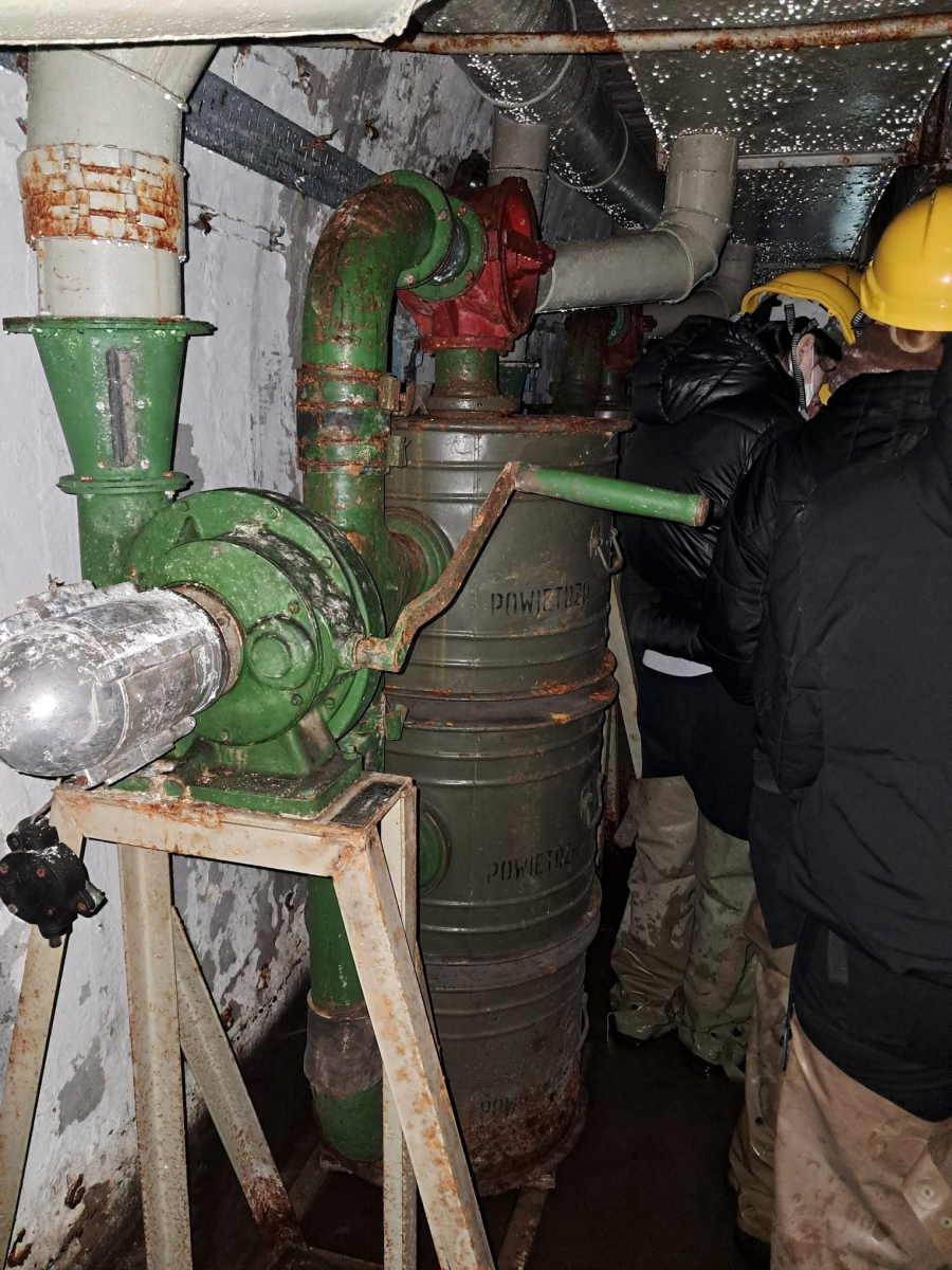 Następnie, po założeniu woderów, wyruszyliśmy w podziemny spacer. Warunki były wymagające – miejscami woda sięgała do kolan, było ciemno i wilgotno– jednak właśnie taka forma zwiedzania pozwala najlepiej poczuć klimat minionych czasów i zrozumieć realia, w jakich funkcjonowały te obiekty.