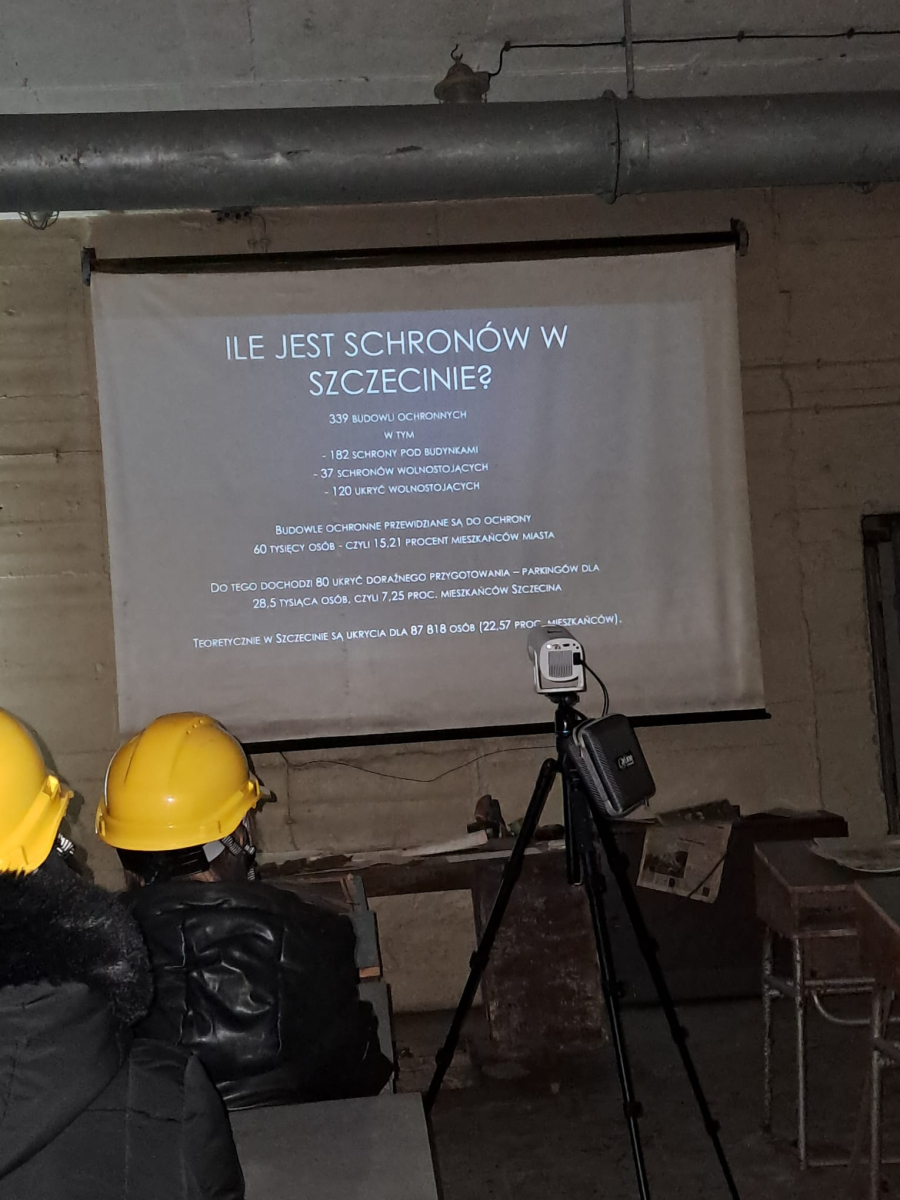 Naszym przewodnikiem był pan Andrzej, który w niezwykle ciekawy i przystępny sposób opowiadał o bunkrach w Szczecinie, ich przeznaczeniu, systemach wentylacyjnych oraz o tym, jak mogłoby wyglądać życie pod ziemią w sytuacji zagrożenia. Była to nie tylko lekcja historii, ale również wiedzy technicznej i refleksji nad codziennością w czasach kryzysu.