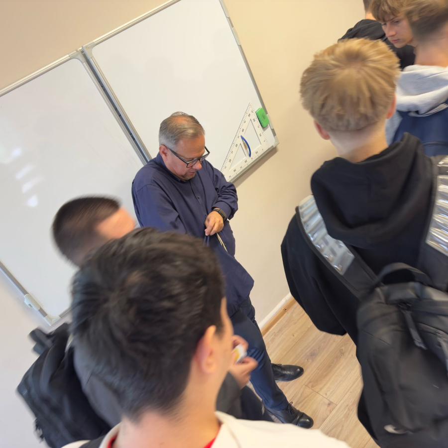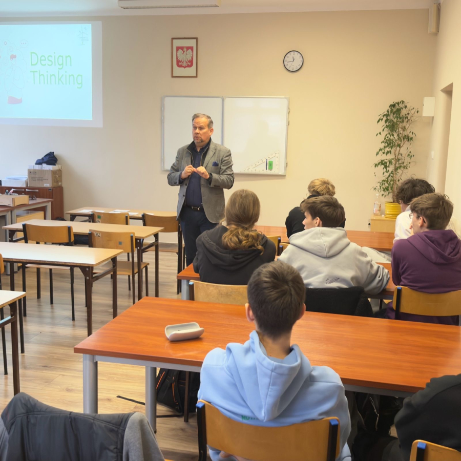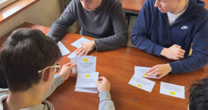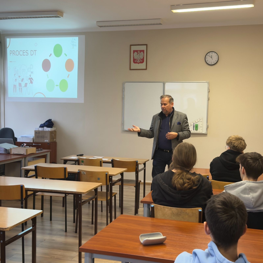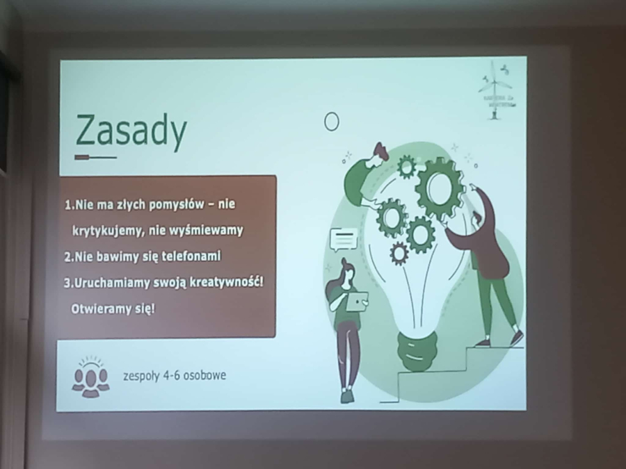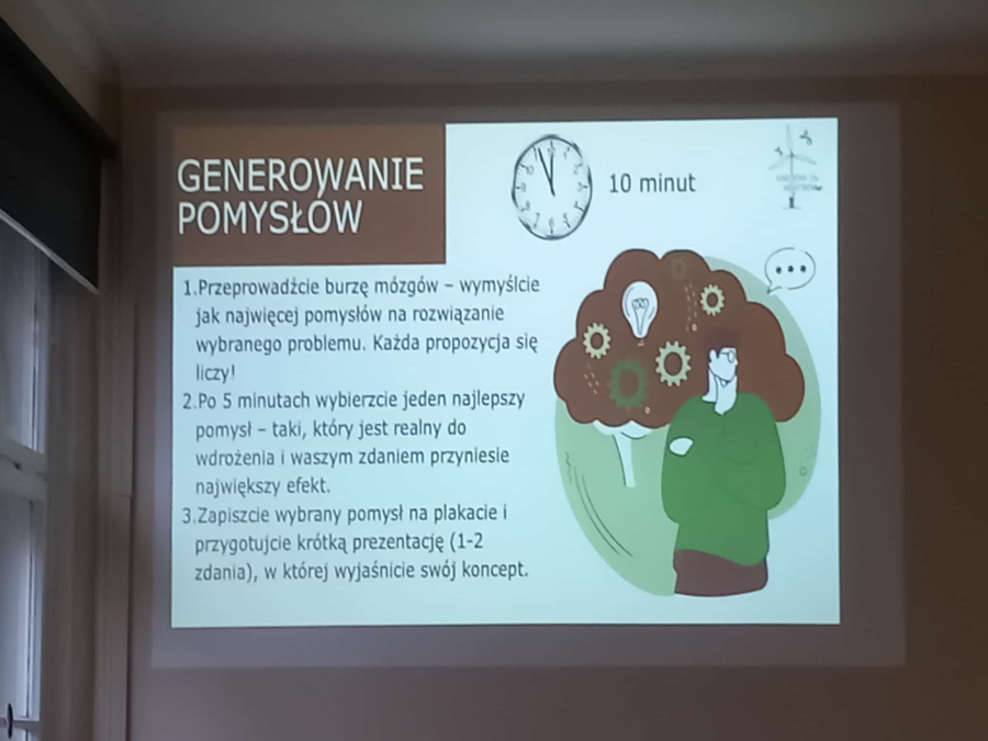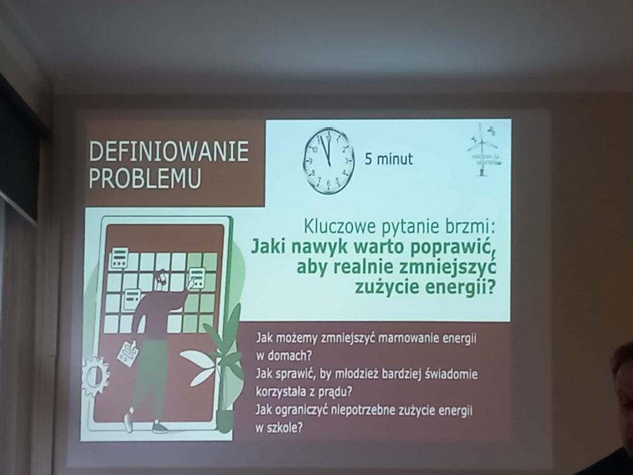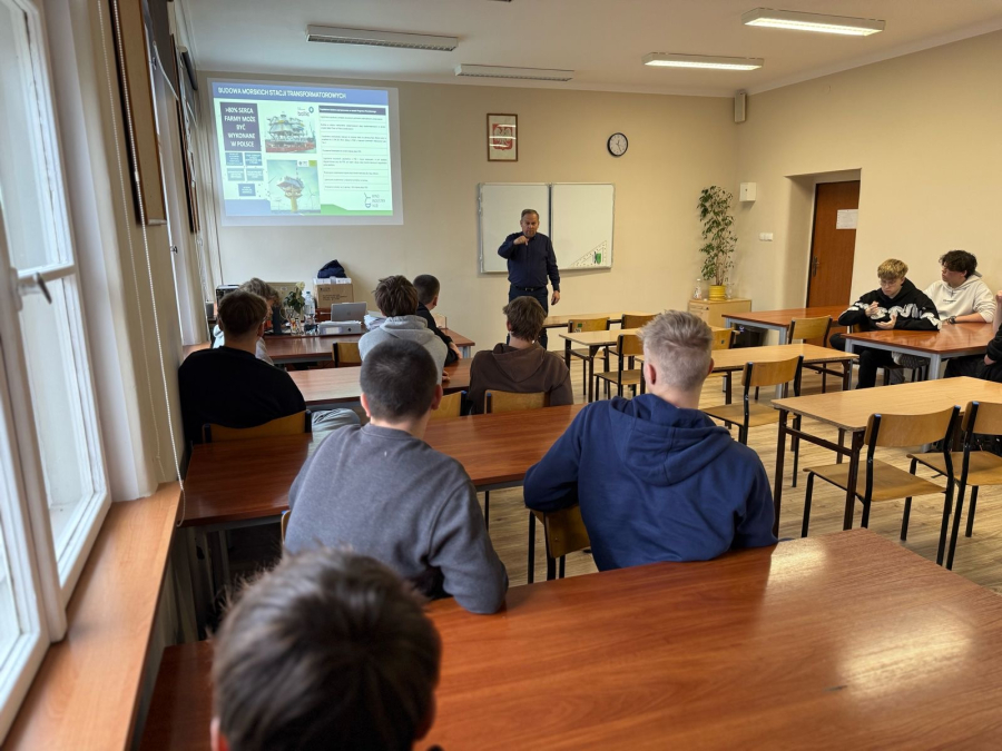 Uczniowie klasy 4E (technik urządzeń i systemów energetyki odnawialnej) kolejny raz wzięli udział w szkoleniu poświęconym morskim siłowniom wiatrowym. Na początku, prowadzący szkolenie - Pan Krzysztof Tomaszewski podzielił nas na grupy 4-osobowe. Analizowaliśmy wybrane sytuacje generujące straty ciepła lub niepotrzebne zużycie energii elektrycznej. Zajęcia miały na celu pokazać nam zasady współpracy razem w grupie i analizowanie kwestii problemowych. Musieliśmy określić, jakie 4 zagrożenia są najbardziej szkodliwe dla środowiska i próbowaliśmy zaproponować rozwiązania, które będą zapobiegawcze i proekologiczne.