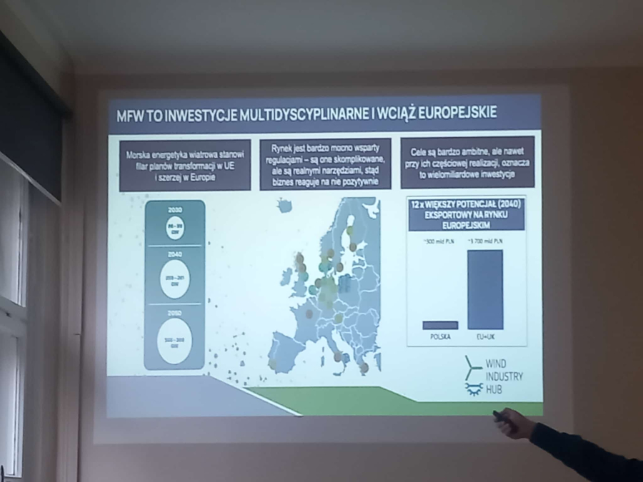 Obejrzeliśmy film ze statkiem, który stawia turbiny wiatrowe na morzu, analizując kwestie techniczne procesu montowania. Zapoznaliśmy się z programem dwóch wizyt studyjnych, które czekają nas w przyszłości.