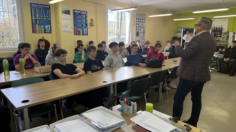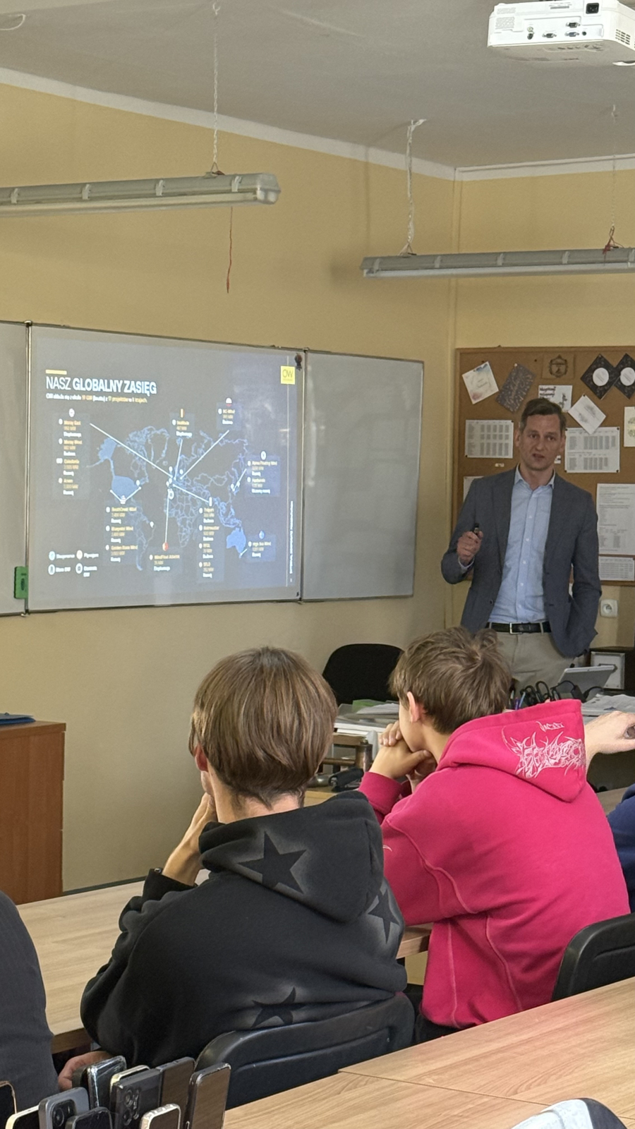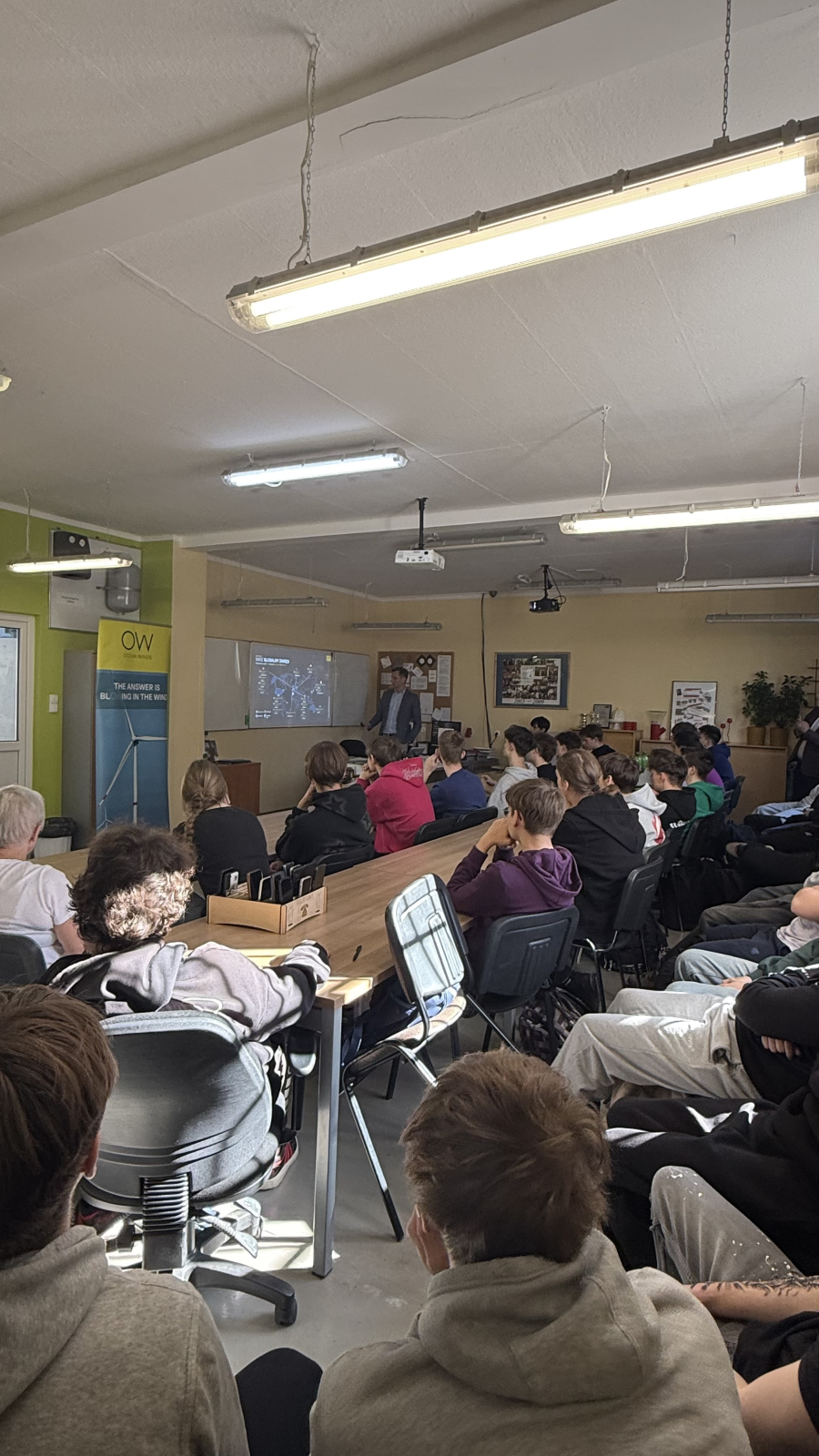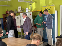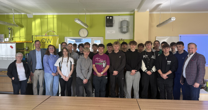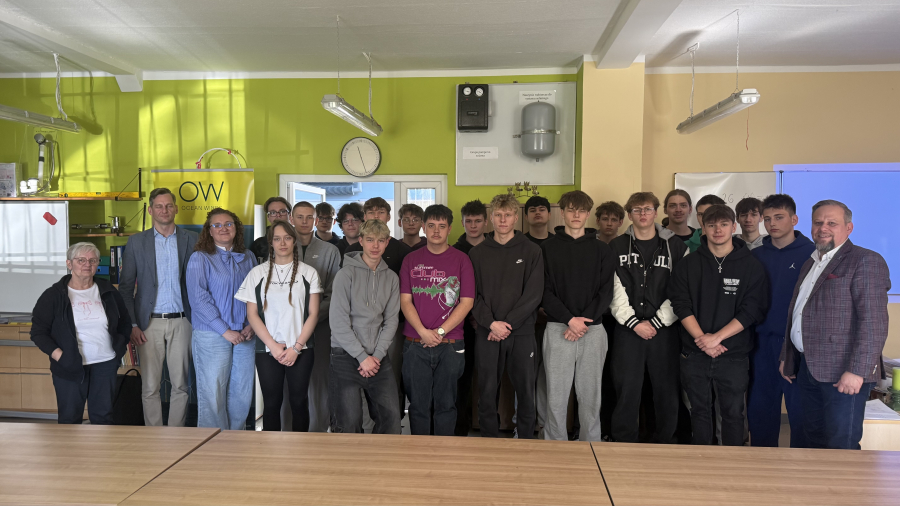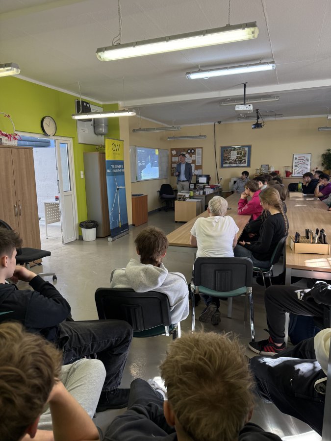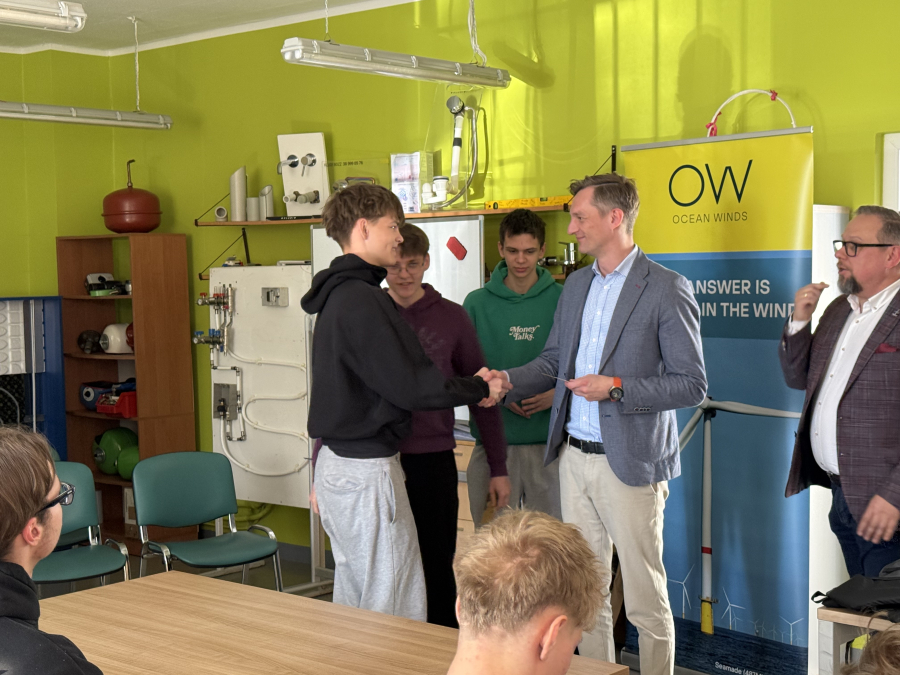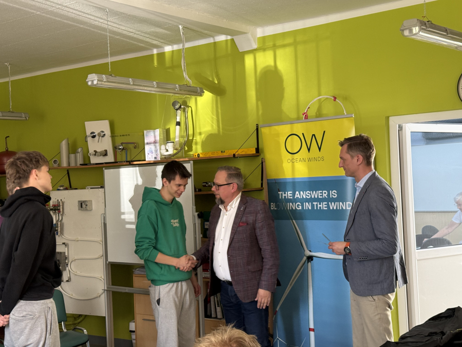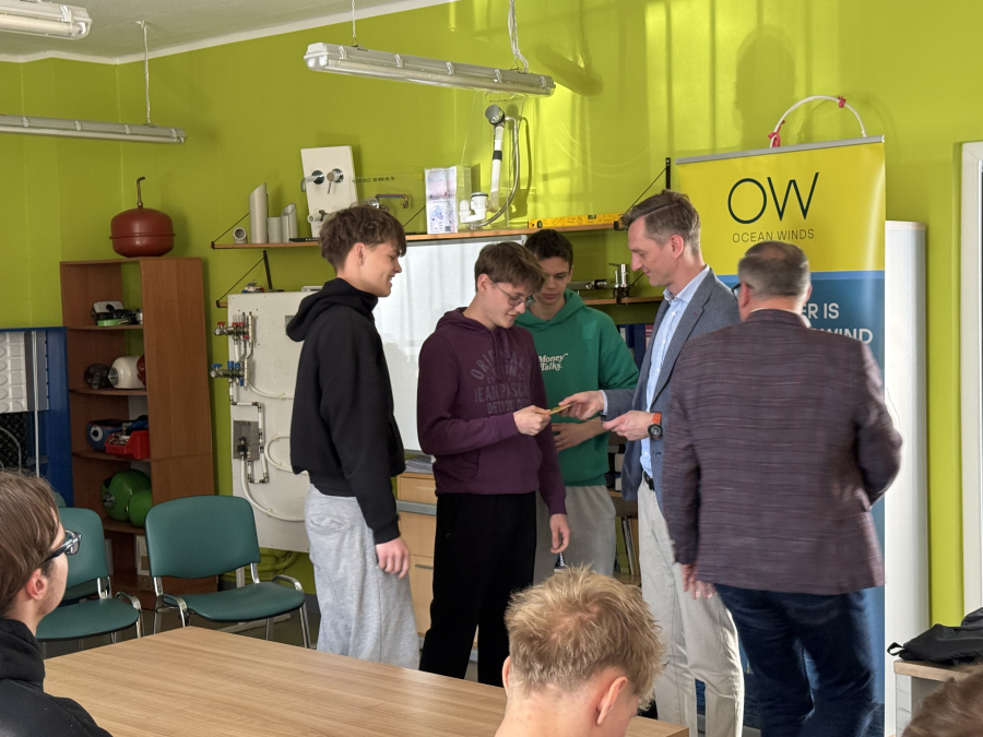 Uczniowie klasy 4E (technik urządzeń i systemów energetyki odnawialnej) odebrali dziś certyfikaty z rąk Pana Prezesa Ocean Winds -Kacpra Kostrzewy. Przez ponad dwa lata młodzież cyklicznie uczestniczyła w serii szkoleń prowadzonych przez Pana Krzysztofa Tomaszewskiego. Tematem były morskie siłownie wiatrowe, od etapu projektu, prognozowania, oceny środowiskowej, pomiarów warunków wietrzności, oceny finansowej, poprzez planowanie inwestycji, dobór urządzeń i elementów sieci dystrybucji, poprzez łańcuchy przesyłu energii. Nasi przyszli monterzy i serwisanci poszerzyli wiedzę o metodach montażu turbin wiatrowych na morzu, typach fundamentów, roli trachostacji, materiałach i komponentach niezbędnych do postawienia morskich siłowni wiatrowych. Analizowali parametry pracy tego systemu i wielkość produkcji energii, która może odciążyć polski system energetyczny. Dzięki projektowi Kariera z wiatrem pojawiły się nowe możliwości rozwoju zawodowego, propozycje stażów zawodowych i perspektywa wyboru ścieżki zawoodwej w tej dziedzinie.